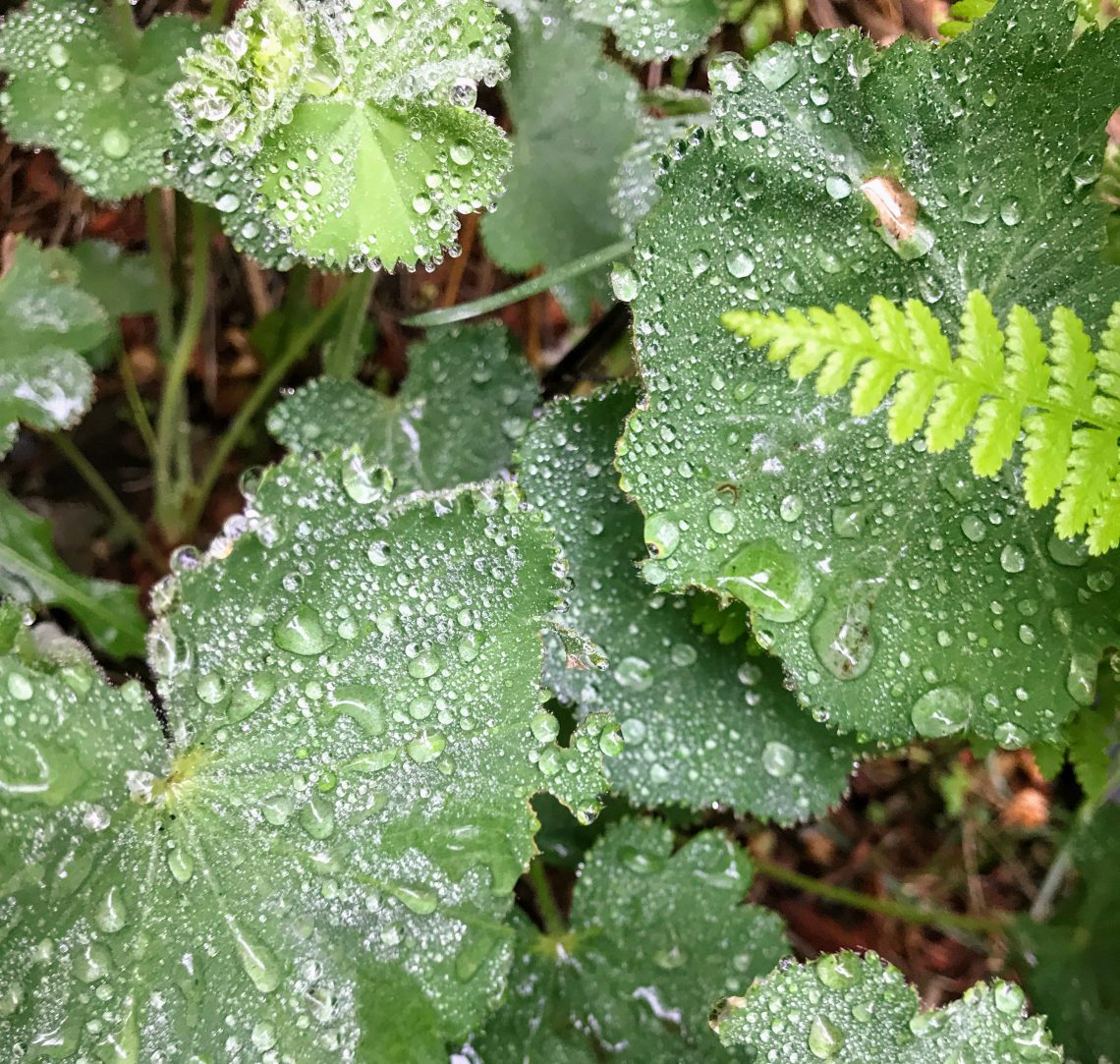 So while the surrounding atmosphere may be trying to stomp on your dreams or keep you down making you feel less than, nothing is too great for God. Keep walking toward what your heart is calling you to today. So wipe away those tears. The New Living Translation of Psalm 58:3 says, “You keep track of all my sorrows. You have collected all of my tears in your bottle. You have recorded each one of them in your book.” The photo of the Lady’s Mantle shows collection of the rain. Lovely little beads of water collect on each leaf. Those droplets of water gravitate to the edge and eventually water it’s roots. While the storm may be an eventual happening, the watering is life sustaining. When hope seems out of reach faith has the ability to lift you.